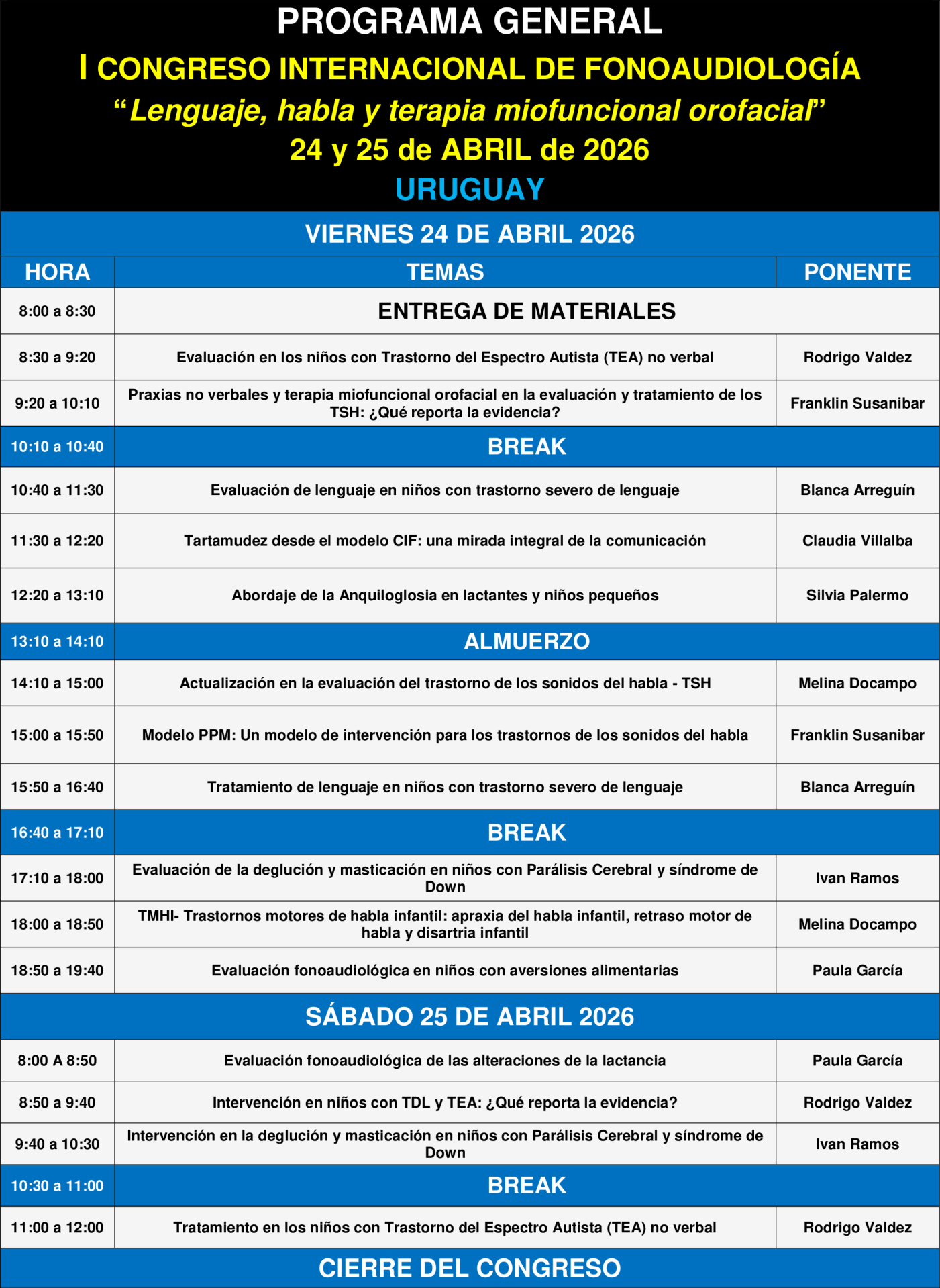 I CONGRESO INTERNACIONAL DE FONOAUDIOLOGÍA – “Lenguaje, habla y terapia miofuncional orofacial” // Montevideo, Uruguay