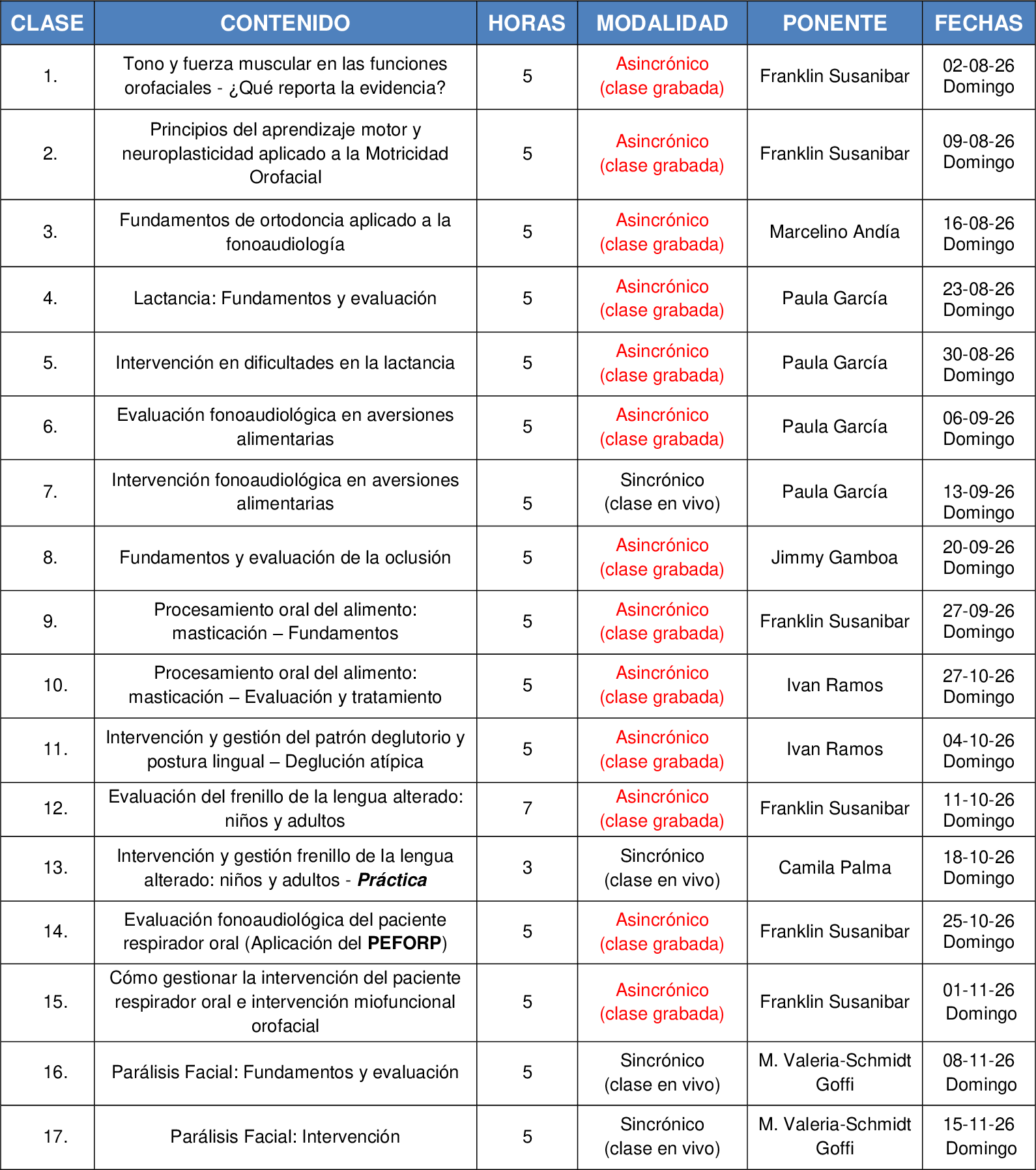 Clases sincrónicas (en vivo):